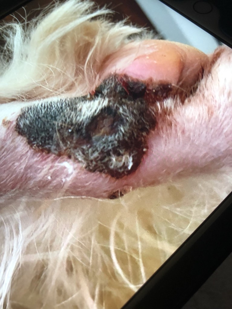 In the summer of 2021, Rory was bitten on the leg by an adder and became critically ill. Rory sustained significant poisoning and infection and, for a number of reasons, the wound was delayed in healing. Rory also contracted a secondary infection in the mouth and down into the throat, from licking the wound, causing ulcers and inflammation significant enough for Rory to lose his voice. Excellent veterinary care was essential in both Rory’s survival and recovery. In addition, Canine Bowen Technique was suggested to his owner by a friend as a modality that might compliment his recovery alongside veterinary care and medication.