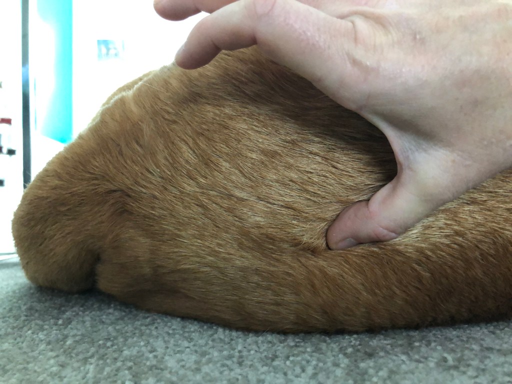 - Rescue/re-homed dogs – relaxation of tension caused by earlier stress and trauma.